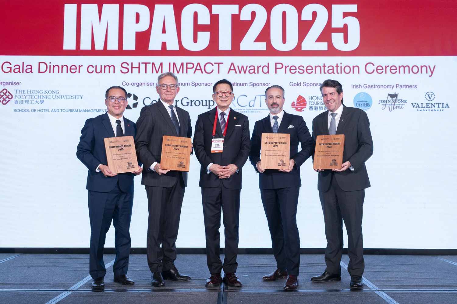 Hong Kong, Hong Kong SAR, December 11, 2025 / TRAVELINDEX / The Hong Kong Polytechnic University (PolyU) School of Hotel and Tourism Management (SHTM) proudly presented the inaugural SHTM IMPACT Award 2025 for Service Excellence – Hotel Industry to five outstanding hotels at the IMPACT2025 Conference Gala Dinner, held on 9 December 2025 at Hotel ICON. The IMPACT Conference is the flagship academic conference hosted by the SHTM in collaboration with CoStar Group Academic Engagement, which brings together global researchers, industry leaders, and policymakers to bridge the gap between research and industry practice. By turning academic insights into real-world solutions, the conference is dedicated to driving innovation and progress in the hospitality and tourism industry.